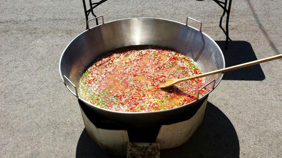 Preparando el sofrito para la paella gigante de Blascomillán en Ávila.